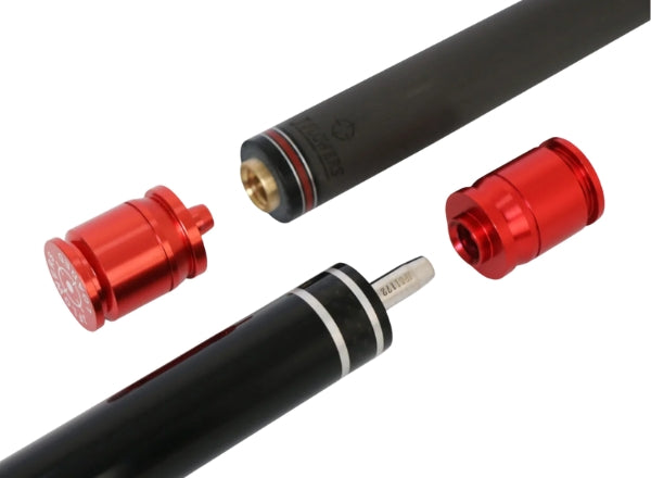 Delivering explosive power, precision, and control, the LOADED is a game-changing breakthrough in cue design. Built with intensity and control in mind, this powerhouse cue features a premium maple wood butt, nowrap handle, with striking red accents, a metal butt cap, and inlaid metal rings. It even includes matching red metal joint protectors for a polished finish. At its core, the LOADED boasts an innovative 12.9 mm aero-grade carbon fiber shaft, a durable cox resin ferrule, and the revolutionary LOADED break tip—engineered by JFlowers for optimal power, accuracy, and control.